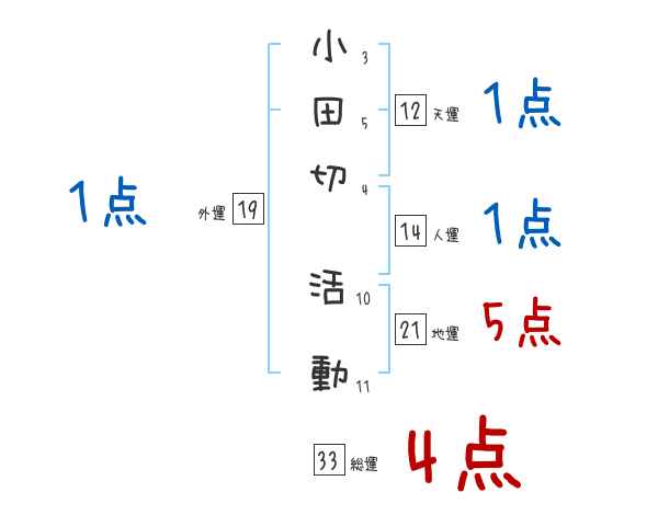 外運![]() | 小田切活動さんの外運は19画の1つ星!優れた才能を持ちますが、協調性が足りないことも。周りの人と協力する事を意識しましょう。 生活面を象徴する運勢です。外部から受ける影響力を表し、結婚運、家庭運や職場、環境への順応性を表します。 |