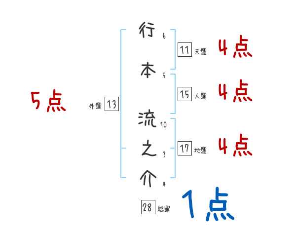 行本流之介さんの画数の鑑定結果