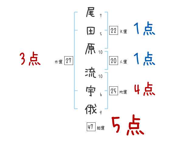 尾田原流宇俄さんの画数の鑑定結果