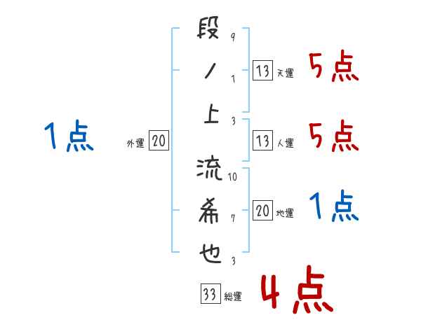総運![]() | 段ノ上流希也さんの総運は33画の4つ星!権力志向でプライドが高い。勇気があり運を切り開き成功する。 あなたの人生を表す1番重要な運勢です。生涯を通じて影響する総合運となり、主に50歳以降の晩年期に影響を及ぼします。 |