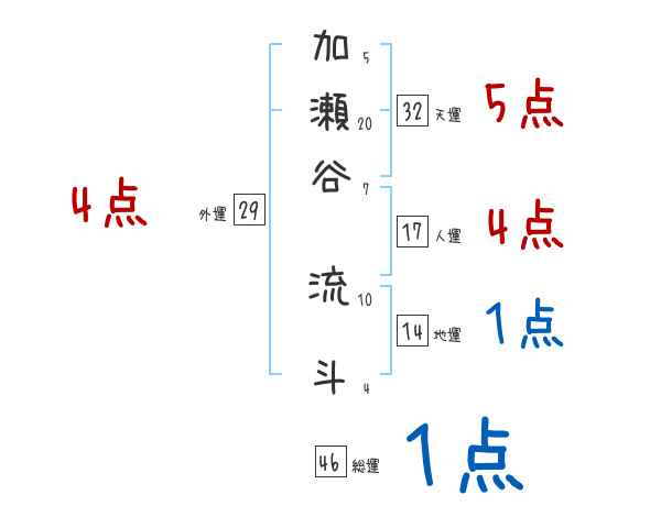 加瀬谷流斗さんの画数の鑑定結果