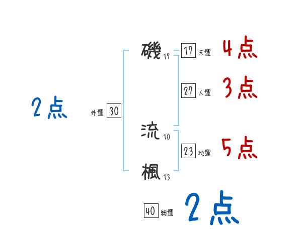 外運![]() | 磯流楓さんの外運は30画の2つ星!浮き沈みの激しさに注意しましょう。 生活面を象徴する運勢です。外部から受ける影響力を表し、結婚運、家庭運や職場、環境への順応性を表します。 |