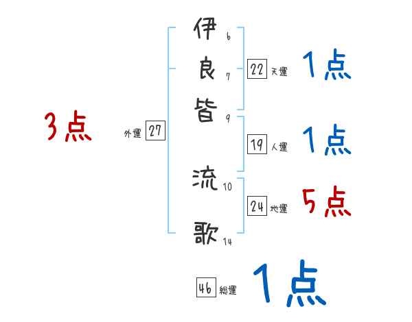 外運![]() | 伊良皆流歌さんの外運は27画の3つ星!頭脳明晰だが強情で摩擦が多い傾向。孤立に注意。 生活面を象徴する運勢です。外部から受ける影響力を表し、結婚運、家庭運や職場、環境への順応性を表します。 |