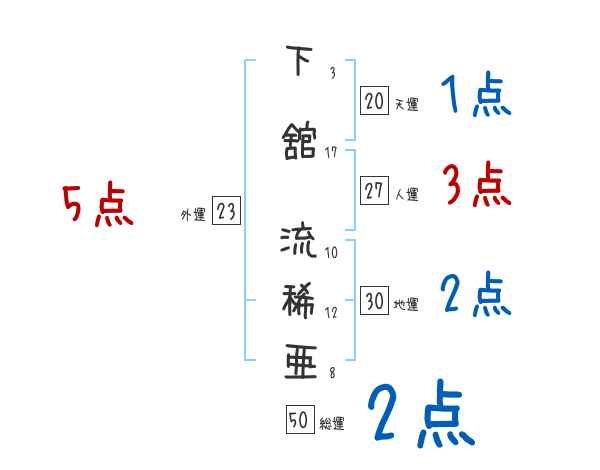下舘流稀亜さんの画数の鑑定結果