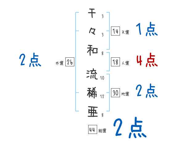千々和流稀亜さんの画数の鑑定結果