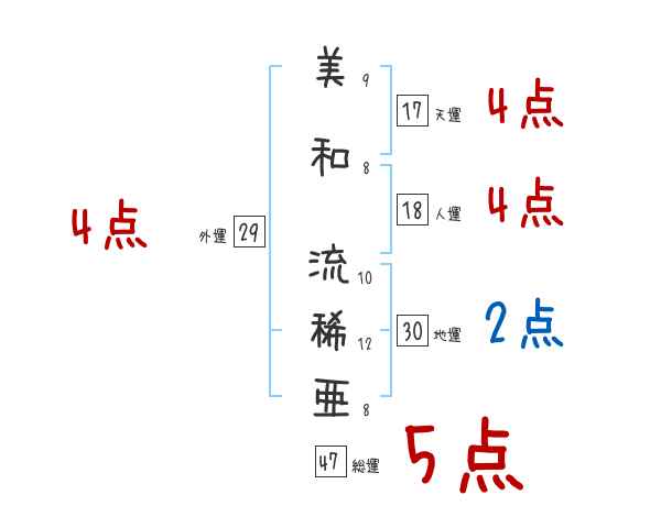 美和流稀亜さんの画数の鑑定結果