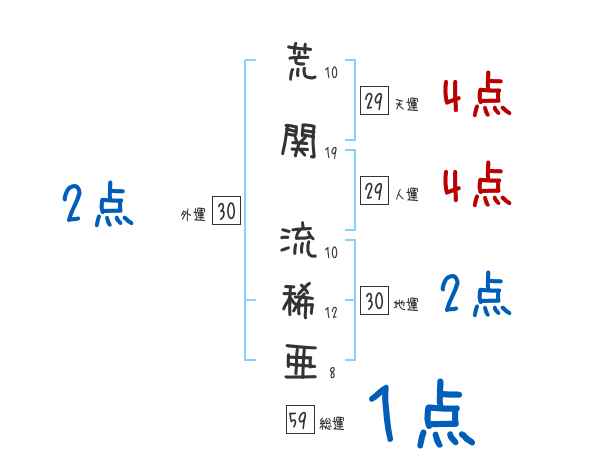天運![]() | 荒関流稀亜さんの天運は29画の4つ星!完全主義で才能がある。厳格な心の持ち主。 家系が持つ宿命的な運勢を表します。祖先から受け継いだ苗字ですので自分の力が及びません。家柄を象徴します。 |