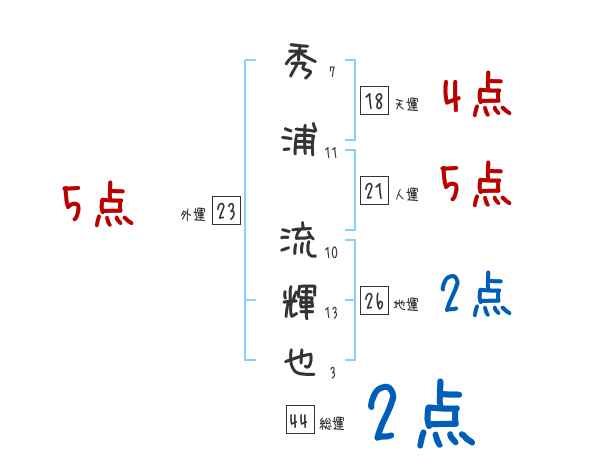 秀浦流輝也さんの画数の鑑定結果