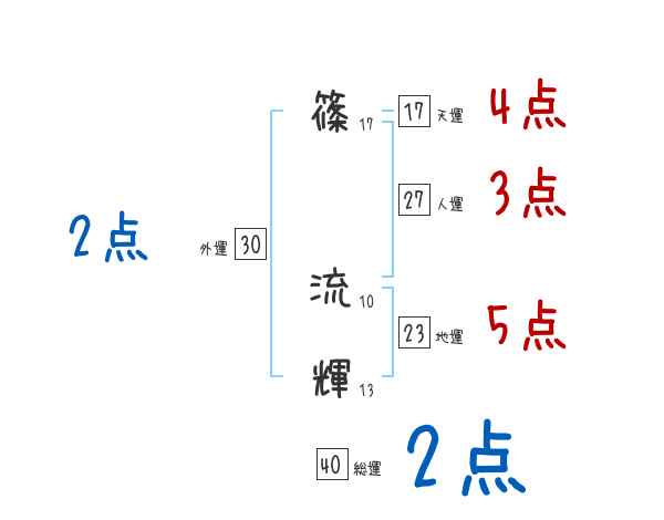 篠流輝さんの画数の鑑定結果