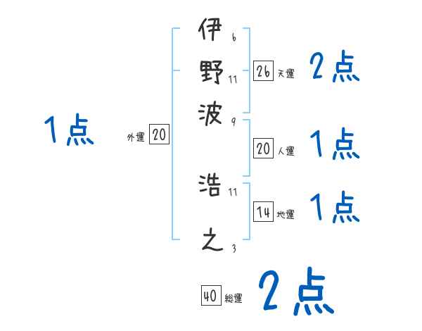 天運![]() | 伊野波浩之さんの天運は26画の2つ星!波瀾万丈かも。信頼できる人を大事にしましょう。 家系が持つ宿命的な運勢を表します。祖先から受け継いだ苗字ですので自分の力が及びません。家柄を象徴します。 |
