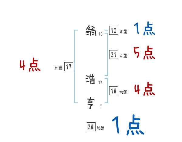 翁浩亨さんの画数の鑑定結果