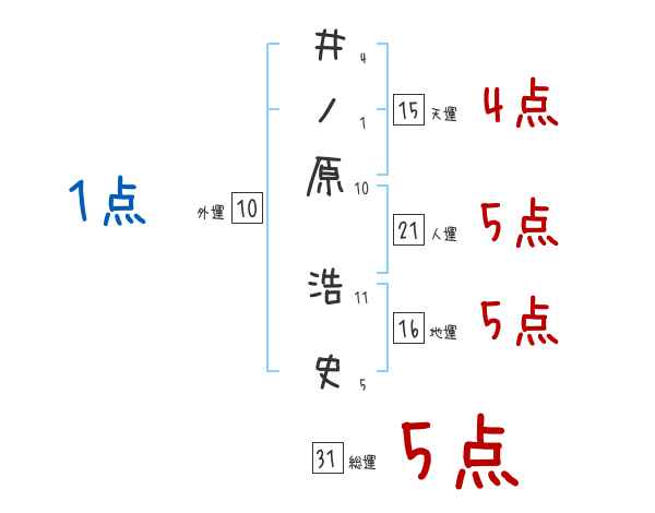 人運![]() | 井ノ原浩史さんの人運は21画の5つ星!統率力がある。独立し成功する。名誉を手に入れる。 性格や才能などを表す2番目に重要な運勢です。人間関係や協調性、社会的な成功に影響します。主に20歳から50歳ぐらいまでの中年期の運勢を表します。 |