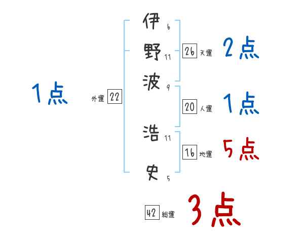 伊野波浩史さんの画数の鑑定結果