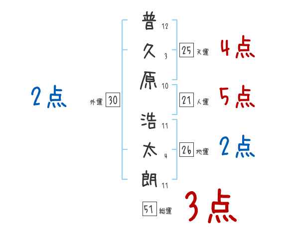 普久原浩太朗さんの画数の鑑定結果
