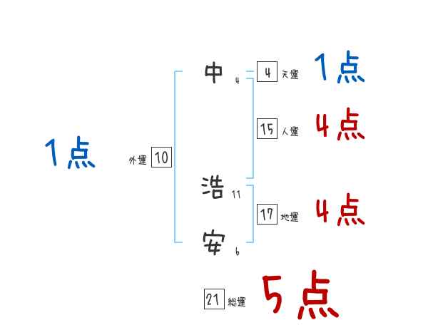 中浩安さんの画数の鑑定結果