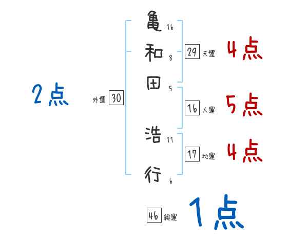 亀和田浩行さんの画数の鑑定結果