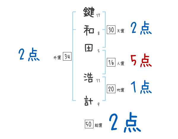 鍵和田浩計さんの画数の鑑定結果