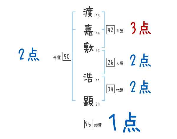 渡嘉敷浩顕さんの画数の鑑定結果