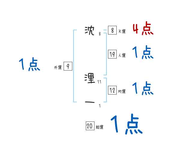 天運![]() | 沈浬一さんの天運は8画の4つ星!勤勉家。根気強く努力し成功する。忍耐力がある。 家系が持つ宿命的な運勢を表します。祖先から受け継いだ苗字ですので自分の力が及びません。家柄を象徴します。 |