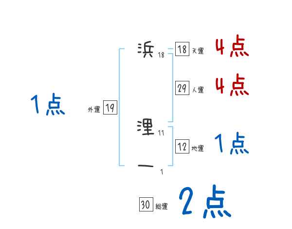 外運![]() | 浜浬一さんの外運は19画の1つ星!優れた才能を持ちますが、協調性が足りないことも。周りの人と協力する事を意識しましょう。 生活面を象徴する運勢です。外部から受ける影響力を表し、結婚運、家庭運や職場、環境への順応性を表します。 |