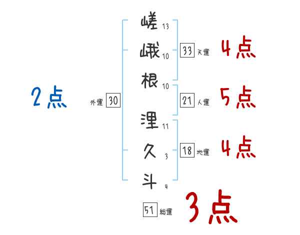 嵯峨根浬久斗さんの総運は51画の3つ星