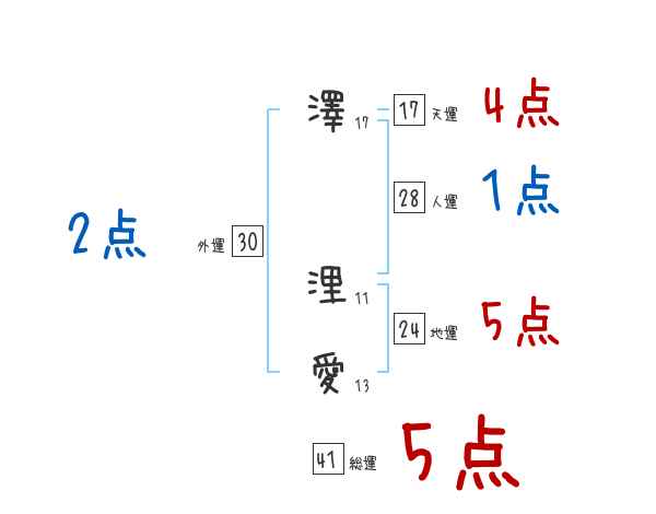 澤浬愛さんの画数の鑑定結果