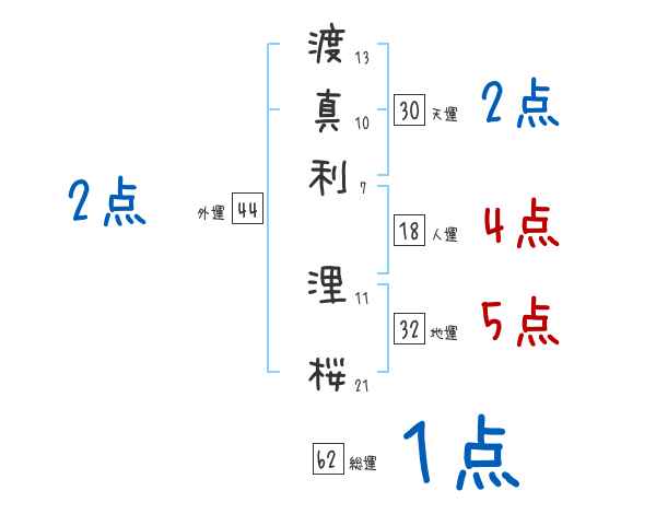 地運![]() | 渡真利浬桜さんの地運は32画の5つ星!柔軟性があり成功する。チャンスが多く金運が良い。 個性を表す基礎的な運勢です。性格形成や対人関係、行動力など家庭環境に影響されます。主に誕生してから20歳くらいまでの若年期の運勢を表します。 |