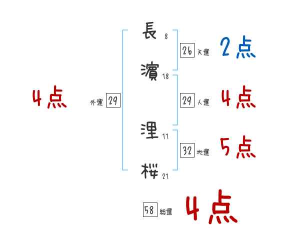 長濵浬桜さんの画数の鑑定結果