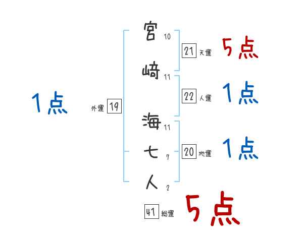 家系が持つ宿命的な運勢を表します。祖先から受け継いだ苗字ですので自分の力が及びません。家柄を象徴します。