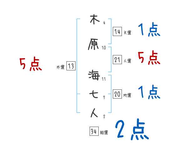 木原海七人さんの画数の鑑定結果