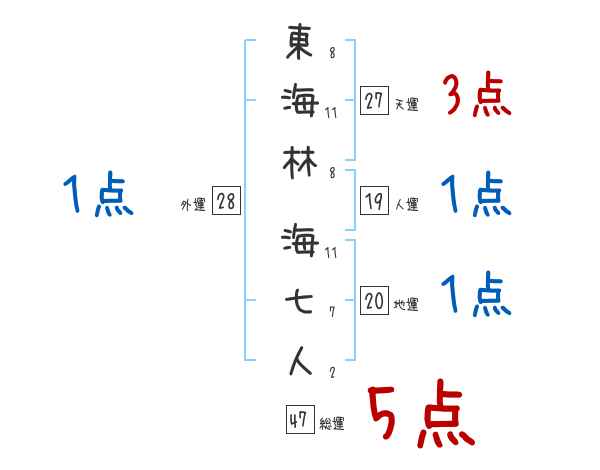 家系が持つ宿命的な運勢を表します。祖先から受け継いだ苗字ですので自分の力が及びません。家柄を象徴します。