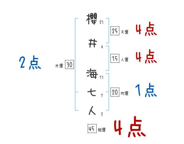 天運![]() | 櫻井海七人さんの天運は25画の4つ星!個性があり才能があふれる。強運の持ち主で発展する。 家系が持つ宿命的な運勢を表します。祖先から受け継いだ苗字ですので自分の力が及びません。家柄を象徴します。 |