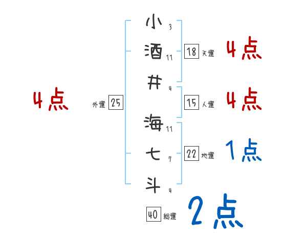 小酒井海七斗さんの画数の鑑定結果