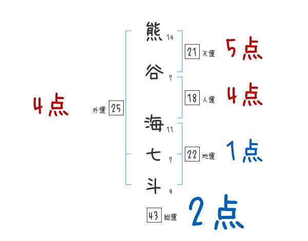 熊谷海七斗さんの画数の鑑定結果