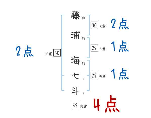 外運![]() | 藤浦海七斗さんの外運は30画の2つ星!浮き沈みの激しさに注意しましょう。 生活面を象徴する運勢です。外部から受ける影響力を表し、結婚運、家庭運や職場、環境への順応性を表します。 |