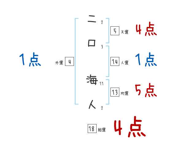 総運![]() | 二口海人さんの総運は18画の4つ星!情熱的で剛気。忍耐力があり信頼される。 あなたの人生を表す1番重要な運勢です。生涯を通じて影響する総合運となり、主に50歳以降の晩年期に影響を及ぼします。 |