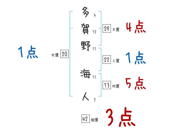 多賀野海人さんの画数の鑑定結果