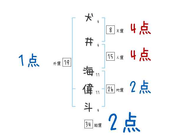 犬井海偉斗さんの画数の鑑定結果