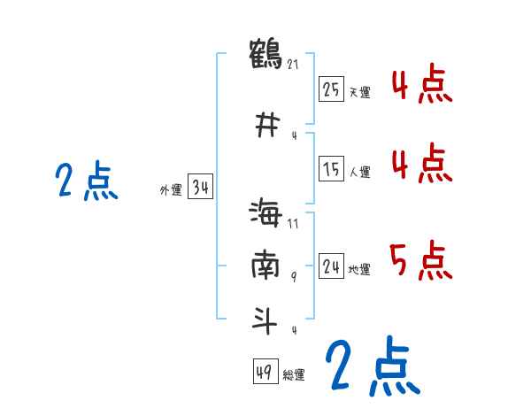 天運![]() | 鶴井海南斗さんの天運は25画の4つ星!個性があり才能があふれる。強運の持ち主で発展する。 家系が持つ宿命的な運勢を表します。祖先から受け継いだ苗字ですので自分の力が及びません。家柄を象徴します。 |