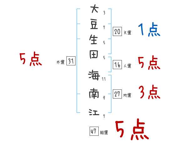 大豆生田海南江さんの画数の鑑定結果