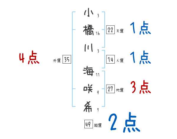 小橋川海咲希さんの画数の鑑定結果