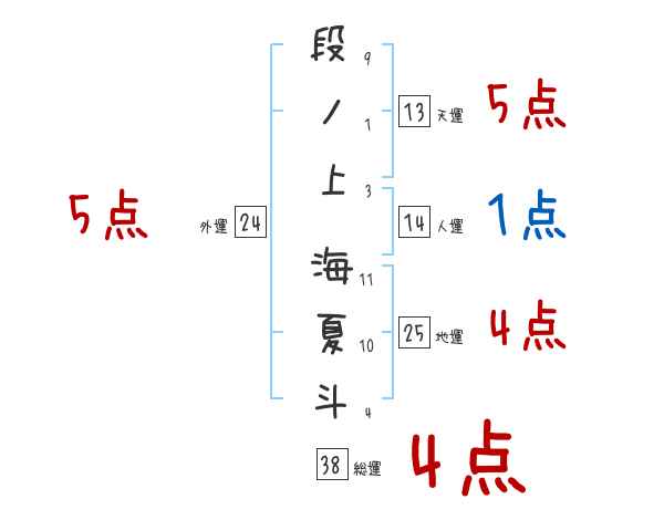 段ノ上海夏斗さんの画数の鑑定結果
