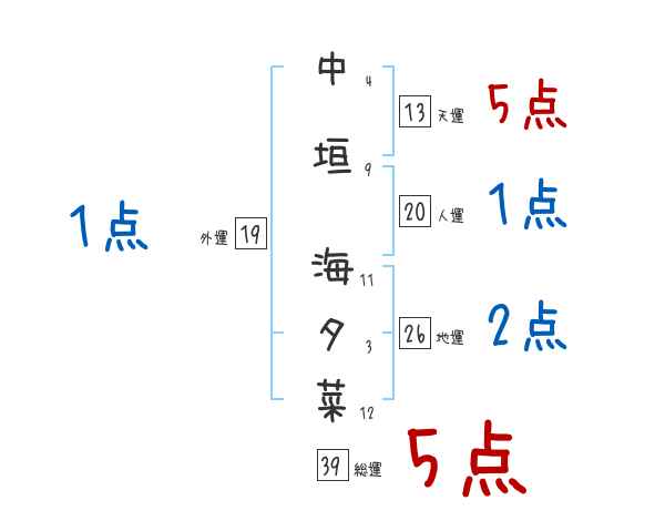 中垣海夕菜さんの画数の鑑定結果