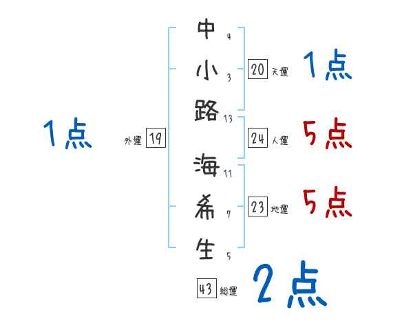 中小路海希生さんの画数の鑑定結果