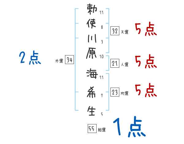 勅使川原海希生さんの総運は55画の1つ星