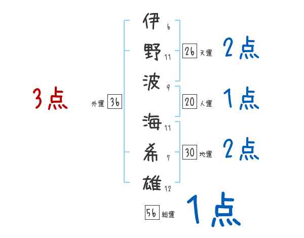 外運![]() | 伊野波海希雄さんの外運は36画の3つ星!先見性が豊かです。多少神経質で苦労することも。 生活面を象徴する運勢です。外部から受ける影響力を表し、結婚運、家庭運や職場、環境への順応性を表します。 |
