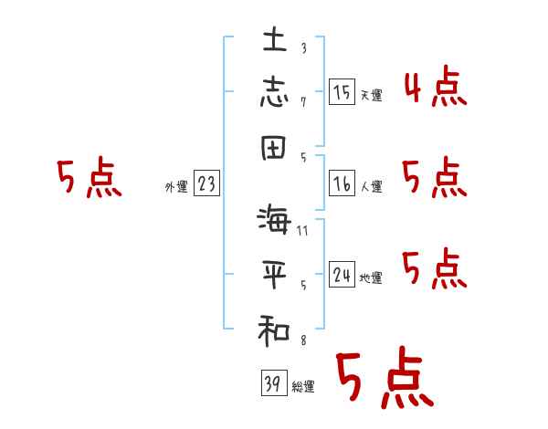 土志田海平和さんの画数の鑑定結果