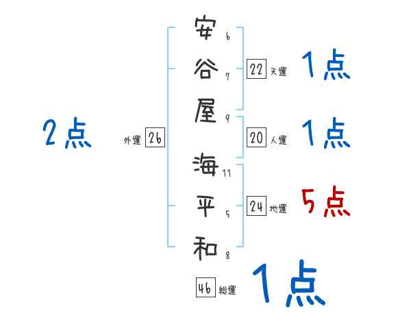安谷屋海平和さんの画数の鑑定結果