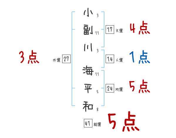 小副川海平和さんの画数の鑑定結果