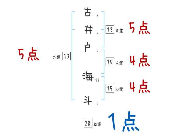 古井戸海斗さんの画数の鑑定結果